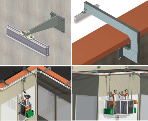-  Thiết vế xung quanh tòa nhà và vơi bán kính uốn cong R=600 có thể tiếp cận tới bất cứ chỗ nào của tòa nhà, với hệ thống xe đẩy trolley bằng động cơ điện hoặc vận hành bằng tay