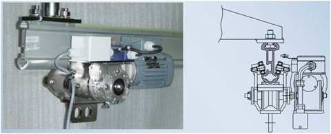 -  BMU Monorail SCE-160, dùng cho di chuyển ngang và leo với gốc leo tới 300 với cụm xe đẩy trolley bằng động cơ điện